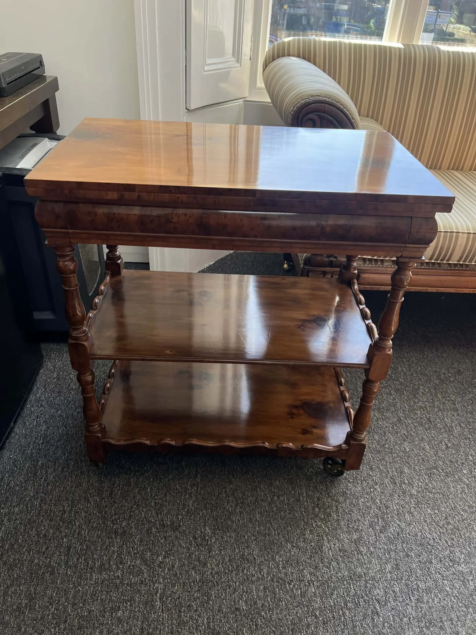 Our traditional process often involves meticulously stripping back old, tired finishes, followed by careful sanding and fine wire-wooling to prepare the timber. While we are experts in traditional French polishing, we also offer a variety of different finishes—from contemporary matt waxes to durable oils—to suit the era and use of your piece.